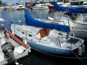 1971 mini yacht, hauled out 2009 for paint, thru hulls ,standing rigging and much, much, more. has 4 sails,auto helm, dvd home theater system, solar 110 inverter, full galley, stainless rudder, ipa tiller, custom keel and much more. A blue water sailer. 808-443-7202