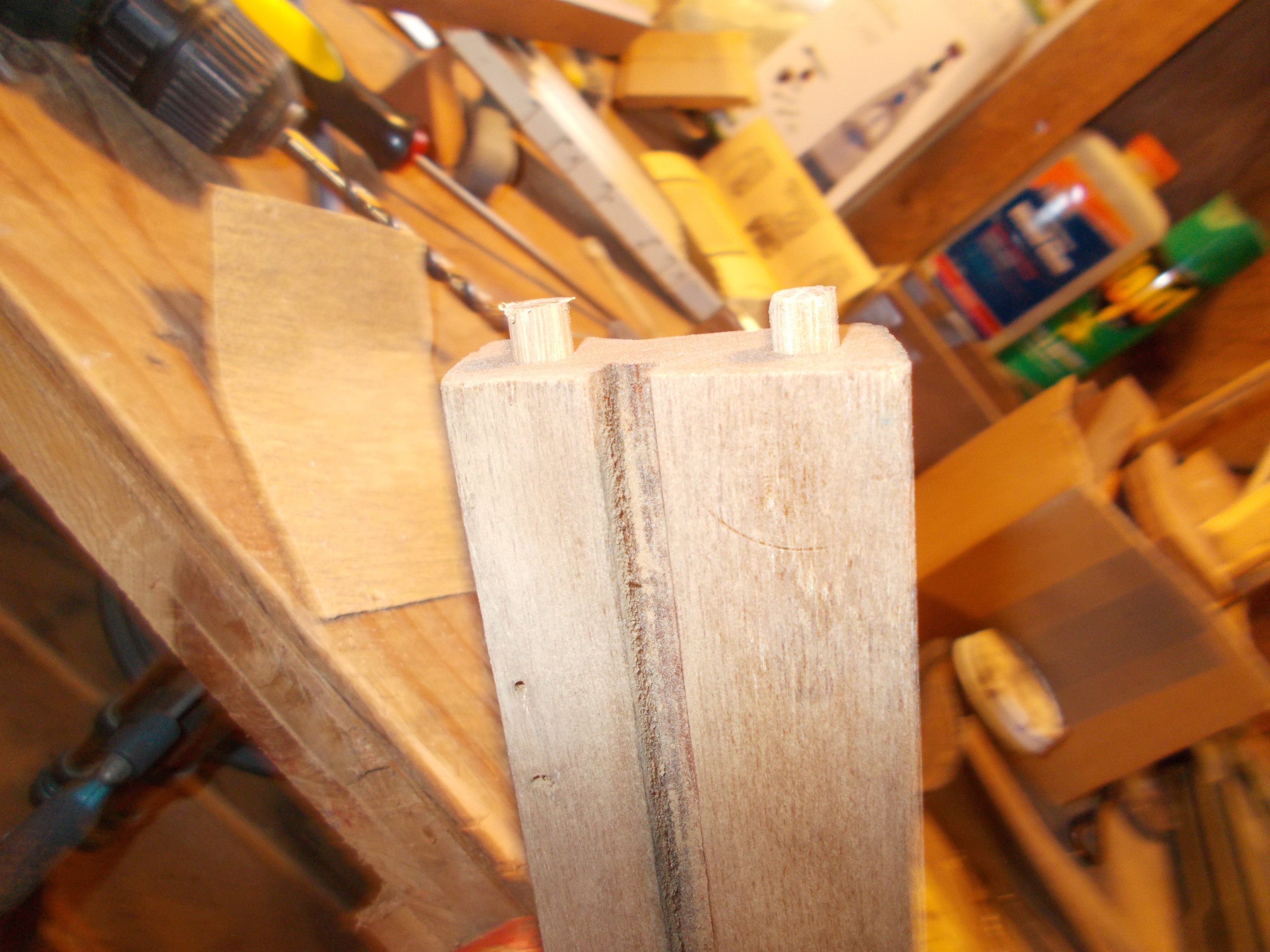 Wood dowel pins help hold the remade pieces together Photo above