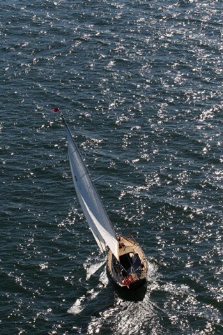 I bought Recovery in Vermont and have cruised her down the Hudson River to New York, all through the (LI) Sound, numerous trips to Block, Vineyard & Nantucket and 2 trips to Maine.She's quite fast. I've done very little racing but have done very well against all boats her size and many heavy larger boats. On the downwind leg, (about 5 miles) of the around Conanicut Island (Jamestown) race a couple of years ago I had a bad start but managed to pass 4 J-24s before the windward mark. As you know, she does very well downwind and in light air and with the masthead rig, flies a very large spinnaker. Here is a photo approaching the Newport Bridge. Note her wooden boom and spinnaker pole. Click here for larger image. |